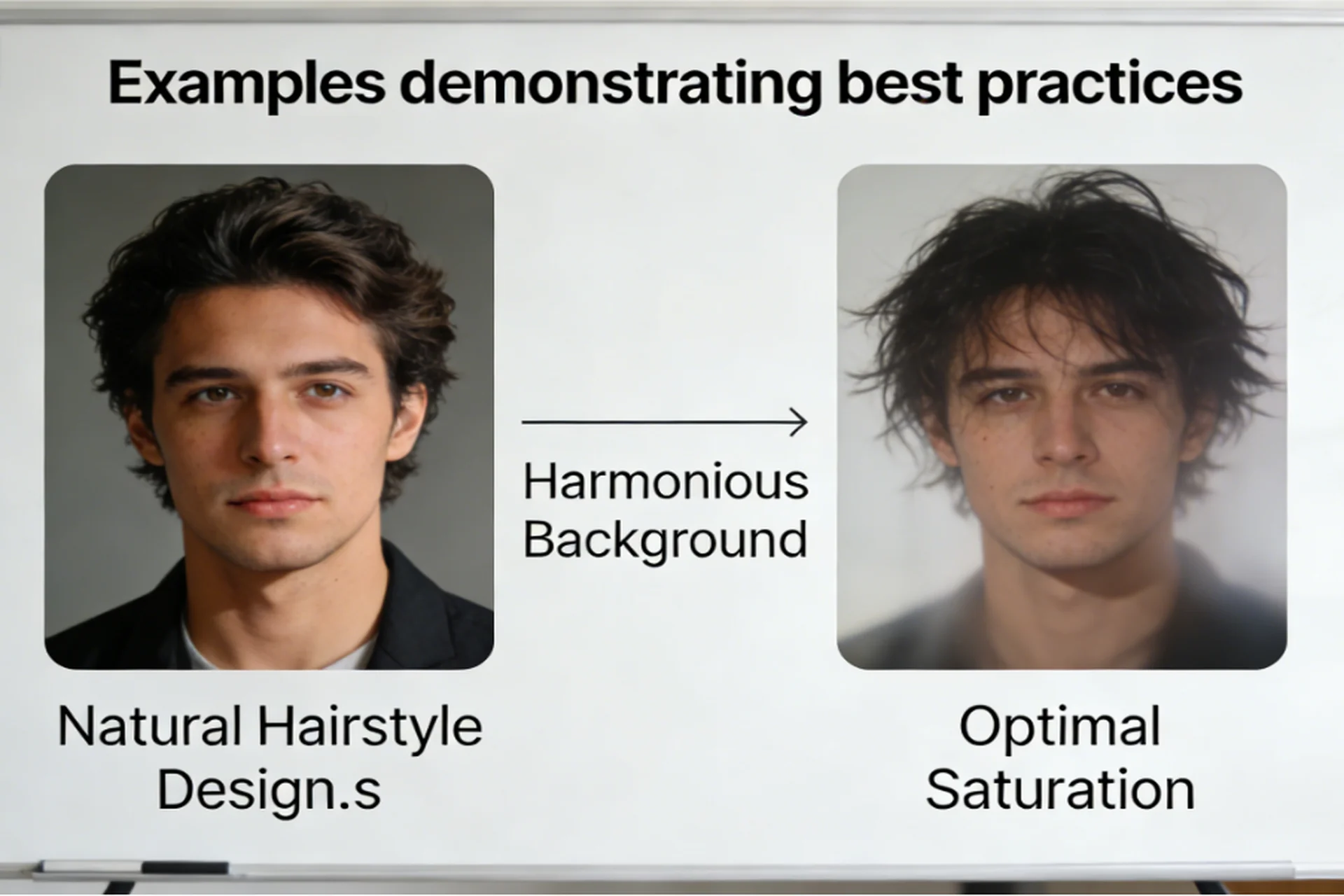 - Hair: Experiment with different hair styles to see what looks good